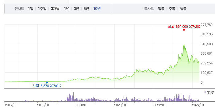 포스코퓨처엠의 1년간 주가 흐름을 분석해보겠습니다. 포스코퓨처엠 주가가 최고가를 기록했을때와 최저가를 기록했을때의 주가는 각각 694,000 l 231,500 이었습니다. 포스코퓨처엠의 5년, 10년 차트를 보시면서 현재 포스코퓨처엠의 흐름을 파악해보시는것도 투자에 큰 도움이 되실겁니다. 이어서 포스코퓨처엠 목표주가에 대해 정리해보도록 하겠습니다.