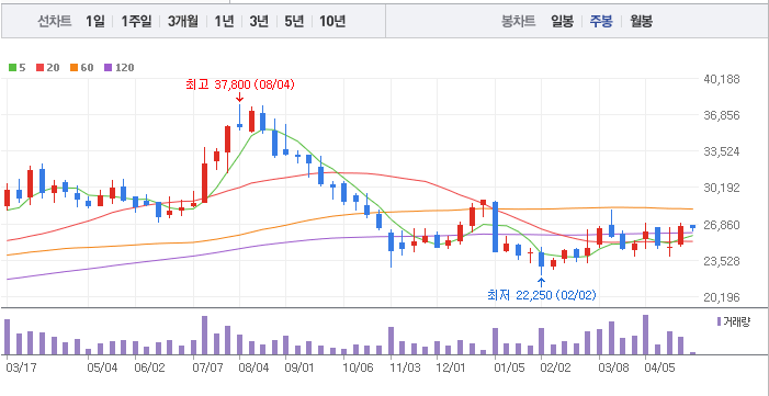 삼성E&A의 1년간 주가 흐름을 분석해보겠습니다. 삼성E&A 주가가 최고가를 기록했을때와 최저가를 기록했을때의 주가는 각각 37,800 l 22,250 이었습니다. 삼성E&A의 5년, 10년 차트를 보시면서 현재 삼성E&A의 흐름을 파악해보시는것도 투자에 큰 도움이 되실겁니다. 이어서 삼성E&A 목표주가에 대해 정리해보도록 하겠습니다.