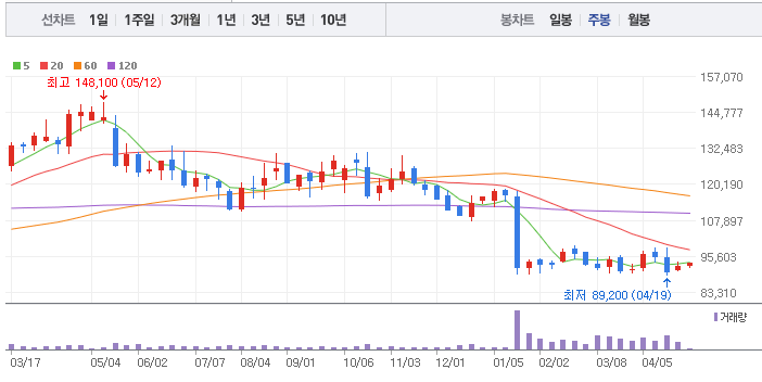 오리온의 1년간 주가 흐름을 분석해보겠습니다. 오리온 주가가 최고가를 기록했을때와 최저가를 기록했을때의 주가는 각각 148,100 l 89,200 이었습니다. 오리온의 5년, 10년 차트를 보시면서 현재 오리온의 흐름을 파악해보시는것도 투자에 큰 도움이 되실겁니다. 이어서 오리온 목표주가에 대해 정리해보도록 하겠습니다.