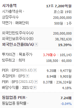 삼성생명은 어떤 기업인지 먼저 정리해보고, 이어서 투자정보도 살펴보겠습니다. 삼성생명의 시총은 17조 7,200억원이고, 시총 순위는 코스피 19위이며, 총 상장주식수는 200000000주 입니다. 그 밖에 PER, EPS는 각각 9.35배 l 9,477원이며, 동일 업종 PER이 7.24배인 것을 고려해서 현재 삼성생명의 PER과 비교해보면 좋을것 같습니다. 현재 한 주당 배당금은 약 3700원 이며 그에따른 시가 배당률은 5.35% 입니다. 그럼 이어서 삼성생명의 재무실적 살펴보도록 하겠습니다.