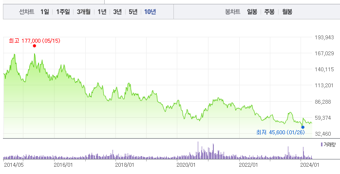 현대백화점의 1년간 주가 흐름을 분석해보겠습니다. 현대백화점 주가가 최고가를 기록했을때와 최저가를 기록했을때의 주가는 각각 71,700 l 45,600 이었습니다. 현대백화점의 5년, 10년 차트를 보시면서 현재 현대백화점의 흐름을 파악해보시는것도 투자에 큰 도움이 되실겁니다. 이어서 현대백화점 목표주가에 대해 정리해보도록 하겠습니다.