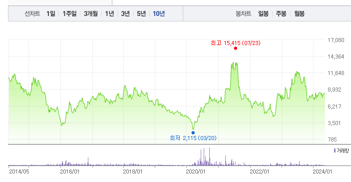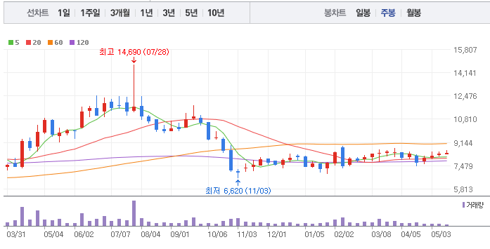 HD현대인프라코어의 1년간 주가 흐름을 분석해보겠습니다. HD현대인프라코어 주가가 최고가를 기록했을때와 최저가를 기록했을때의 주가는 각각 14,690 l 6,620 이었습니다. HD현대인프라코어의 5년, 10년 차트를 보시면서 현재 HD현대인프라코어의 흐름을 파악해보시는것도 투자에 큰 도움이 되실겁니다. 이어서 HD현대인프라코어 목표주가에 대해 정리해보도록 하겠습니다.