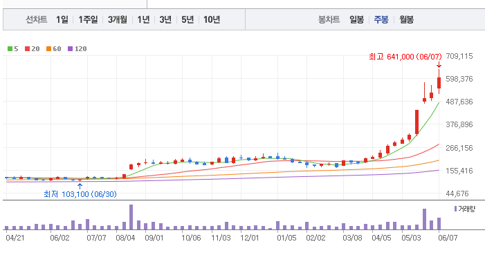 삼양식품의 1년간 주가 흐름을 분석해보겠습니다. 삼양식품 주가가 최고가를 기록했을때와 최저가를 기록했을때의 주가는 각각 604,000 l 103,100 이었습니다. 삼양식품의 5년, 10년 차트를 보시면서 현재 삼양식품의 흐름을 파악해보시는것도 투자에 큰 도움이 되실겁니다. 이어서 삼양식품 목표주가에 대해 정리해보도록 하겠습니다.