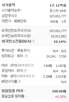 | 네이버 기업 분석 및 목표주가 정리 (0) | 2024.06.14 |