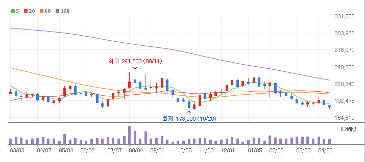 네이버의 1년간 주가 흐름을 분석해보겠습니다. 네이버 주가가 최고가를 기록했을때와 최저가를 기록했을때의 주가는 각각 241,500 l 178,000 이었습니다. 네이버의 5년, 10년 차트를 보시면서 현재 네이버의 흐름을 파악해보시는것도 투자에 큰 도움이 되실겁니다. 이어서 네이버 목표주가에 대해 정리해보도록 하겠습니다.