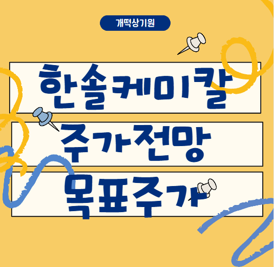 안녕하세요 오늘은 한솔케미칼에 대해 정리해보도록 하겠습니다. 기업 주요 정보 및 투자정보 그리고 실적 등을 살펴보고 향후 주가 전망과 목표주가에 대해 알아보도록 하겠습니다.