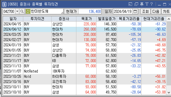 증권사별로 한미반도체의 목표주가는 어떻게 추정하고 있는지와 투자의견은 어떠한지 살펴보겠습니다. 가장 최근에 증권사 상상인에서 설정한 한미반도체 목표가는 220000원이고 투자의견은 'BUY'로 설정해놨습니다. 이전에 설정한 목표가 260000원, 200000원도 투자에 참고하시면 좋을것 같습니다