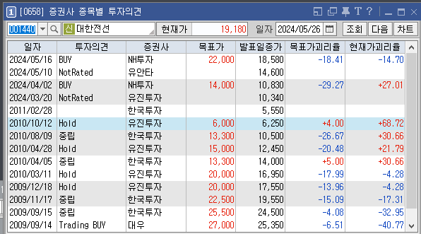 증권사별로 대한전선의 목표주가는 어떻게 추정하고 있는지와 투자의견은 어떠한지 살펴보겠습니다. 가장 최근에 증권사 NH투자에서 설정한 대한전선 목표가는 22000원이고 투자의견은 'BUY'로 설정해놨습니다. 이전에 설정한 목표가 14000원, 13300원도 투자에 참고하시면 좋을것 같습니다