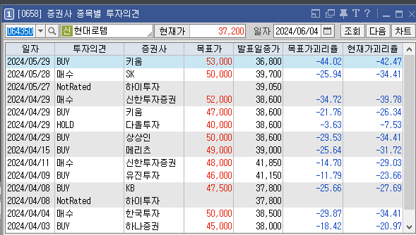증권사별로 현대로템의 목표주가는 어떻게 추정하고 있는지와 투자의견은 어떠한지 살펴보겠습니다. 가장 최근에 증권사 NH투자에서 설정한 현대로템 목표가는 49000원이고 투자의견은 'BUY'로 설정해놨습니다. 이전에 설정한 목표가 49000원, 48000원도 투자에 참고하시면 좋을것 같습니다