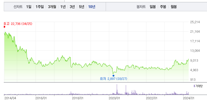 삼성중공업의 1년간 주가 흐름을 분석해보겠습니다. 삼성중공업 주가가 최고가를 기록했을때와 최저가를 기록했을때의 주가는 각각 9,710 l 5,350 이었습니다. 삼성중공업의 5년, 10년 차트를 보시면서 현재 삼성중공업의 흐름을 파악해보시는것도 투자에 큰 도움이 되실겁니다. 이어서 삼성중공업 목표주가에 대해 정리해보도록 하겠습니다.