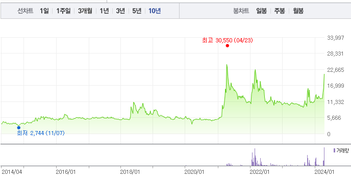 한국석유의 1년간 주가 흐름을 분석해보겠습니다. 한국석유 주가가 최고가를 기록했을때와 최저가를 기록했을때의 주가는 각각 22,400 l 8,950 이었습니다. 한국석유의 5년, 10년 차트를 보시면서 현재 한국석유의 흐름을 파악해보시는것도 투자에 큰 도움이 되실겁니다. 이어서 한국석유 목표주가에 대해 정리해보도록 하겠습니다.