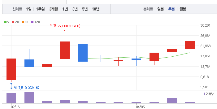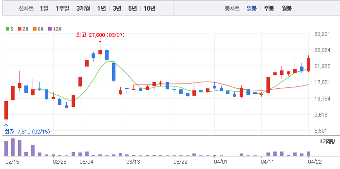 11일 종가가 14,700원이었던 것을 고려하면 현재 주가는 약 50% 상승한 수치입니다. 이러한 주가 움직임이 투자자들의 주목을 받고 있으며, 2만원대에 다시 재진입했다는 사실도 주목받고 있습니다.