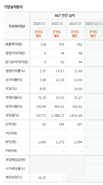 에스피소프트의 재무를 살펴보면 전년도 매출액은 352억원이고 영업이익 48억원, 당기순이익은 44억원을 기록했었습니다. 전년도 부채비는 23.27% 정도 지고 있습니다. 이어서 에스피소프트의 매분기 실적도 검토해 보겠습니다. 전분기 매출액은 억원이고 영업이익은 억원이었습니다. 그에따른 당기순이익은 총 억원을 기록했고, 부채비는 % 입니다.