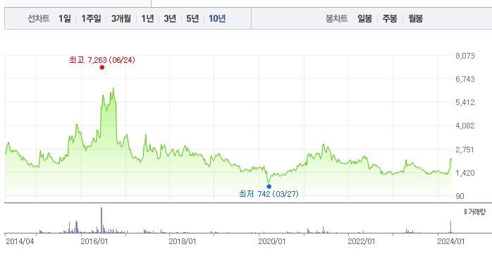 KBI메탈의 1년간 주가 흐름을 분석해보겠습니다. KBI메탈 주가가 최고가를 기록했을때와 최저가를 기록했을때의 주가는 각각 2,495 l 1,240 이었습니다. KBI메탈의 5년, 10년 차트를 보시면서 현재 KBI메탈의 흐름을 파악해보시는것도 투자에 큰 도움이 되실겁니다. 이어서 KBI메탈 목표주가에 대해 정리해보도록 하겠습니다.
