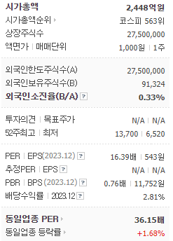 대성에너지은 어떤 기업인지 먼저 정리해보고, 이어서 투자정보도 살펴보겠습니다. 대성에너지의 시총은 2,448억원이고, 시총 순위는 코스피 563위이며, 총 상장주식수는 27500000주 입니다. 그 밖에 PER, EPS는 각각 16.39배 l 543원이며, 동일 업종 PER이 36.15배인 것을 고려해서 현재 대성에너지의 PER과 비교해보면 좋을것 같습니다. 현재 한 주당 배당금은 약 250원 이며 그에따른 시가 배당률은 3.08% 입니다. 그럼 이어서 대성에너지의 재무실적 살펴보도록 하겠습니다.