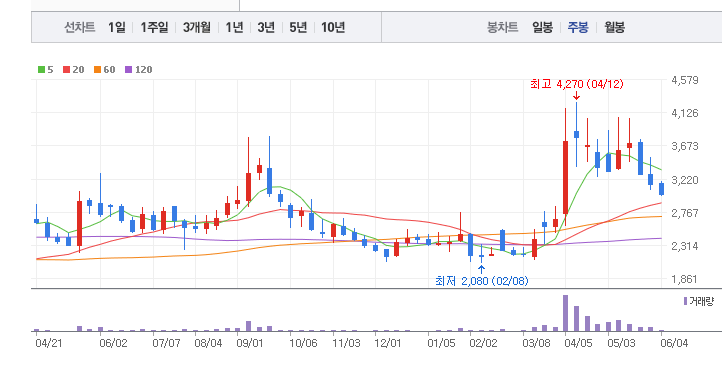 HB테크놀러지의 1년간 주가 흐름을 분석해보겠습니다. HB테크놀러지 주가가 최고가를 기록했을때와 최저가를 기록했을때의 주가는 각각 4,270 l 2,080 이었습니다. HB테크놀러지의 5년, 10년 차트를 보시면서 현재 HB테크놀러지의 흐름을 파악해보시는것도 투자에 큰 도움이 되실겁니다. 이어서 HB테크놀러지 목표주가에 대해 정리해보도록 하겠습니다.