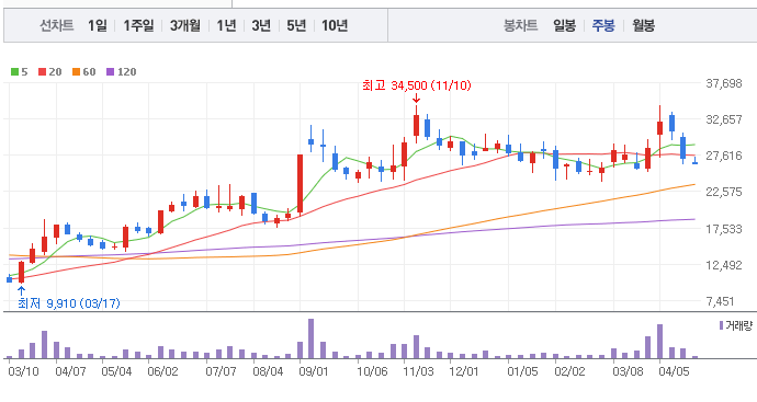 하나마이크론의 1년간 주가 흐름을 분석해보겠습니다. 하나마이크론 주가가 최고가를 기록했을때와 최저가를 기록했을때의 주가는 각각 34,500 l 14,280 이었습니다. 하나마이크론의 5년, 10년 차트를 보시면서 현재 하나마이크론의 흐름을 파악해보시는것도 투자에 큰 도움이 되실겁니다. 이어서 하나마이크론 목표주가에 대해 정리해보도록 하겠습니다.