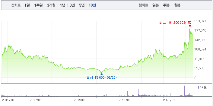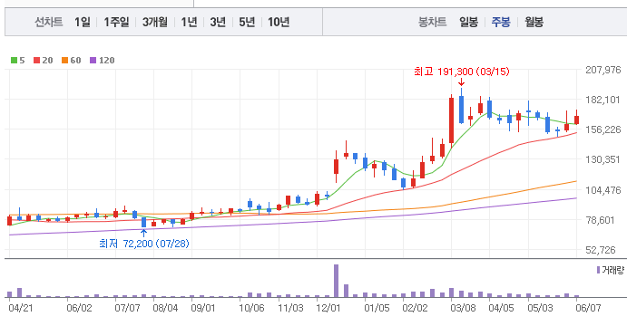 LIG넥스원의 1년간 주가 흐름을 분석해보겠습니다. LIG넥스원 주가가 최고가를 기록했을때와 최저가를 기록했을때의 주가는 각각 191,300 l 72,200 이었습니다. LIG넥스원의 5년, 10년 차트를 보시면서 현재 LIG넥스원의 흐름을 파악해보시는것도 투자에 큰 도움이 되실겁니다. 이어서 LIG넥스원 목표주가에 대해 정리해보도록 하겠습니다.