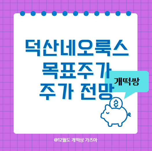 📊 덕산네오룩스의 주가 전망은 긍정적이며, 사업 확장과 성장 가능성에 따른 추가 상승 여력이 주목된다.