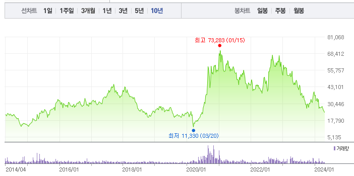 한화솔루션의 1년간 주가 흐름을 분석해보겠습니다. 한화솔루션 주가가 최고가를 기록했을때와 최저가를 기록했을때의 주가는 각각 53,100 l 24,100 이었습니다. 한화솔루션의 5년, 10년 차트를 보시면서 현재 한화솔루션의 흐름을 파악해보시는것도 투자에 큰 도움이 되실겁니다. 이어서 한화솔루션 목표주가에 대해 정리해보도록 하겠습니다.