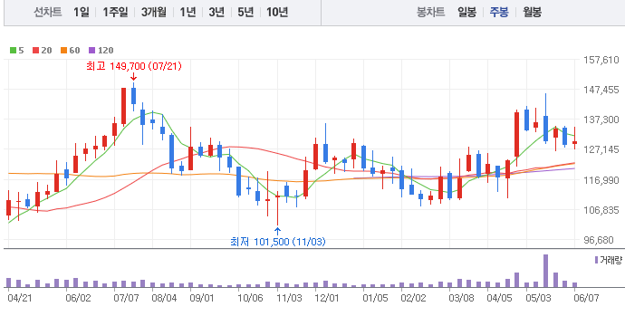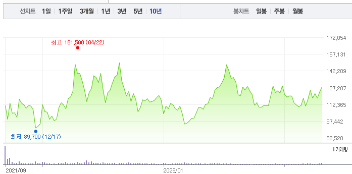 HD현대중공업의 1년간 주가 흐름을 분석해보겠습니다. HD현대중공업 주가가 최고가를 기록했을때와 최저가를 기록했을때의 주가는 각각 149,700 l 101,500 이었습니다. HD현대중공업의 5년, 10년 차트를 보시면서 현재 HD현대중공업의 흐름을 파악해보시는것도 투자에 큰 도움이 되실겁니다. 이어서 HD현대중공업 목표주가에 대해 정리해보도록 하겠습니다.