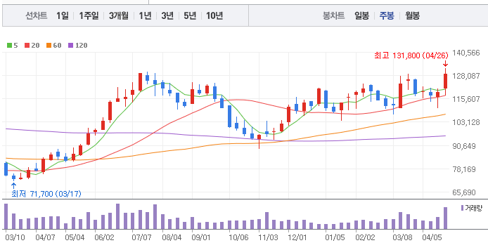 HD한국조선해양의 1년간 주가 흐름을 분석해보겠습니다. HD한국조선해양 주가가 최고가를 기록했을때와 최저가를 기록했을때의 주가는 각각 130,700 l 81,900 이었습니다. HD한국조선해양의 5년, 10년 차트를 보시면서 현재 HD한국조선해양의 흐름을 파악해보시는것도 투자에 큰 도움이 되실겁니다. 이어서 HD한국조선해양 목표주가에 대해 정리해보도록 하겠습니다.